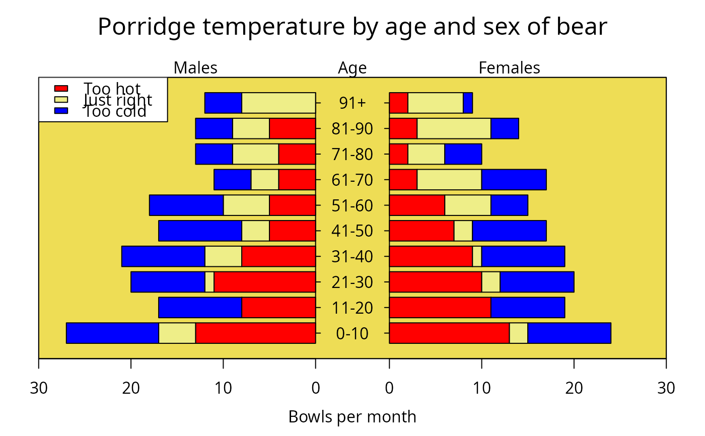 mtext("Porridge temperature by age and sex of bear",3,2,cex=1.5)