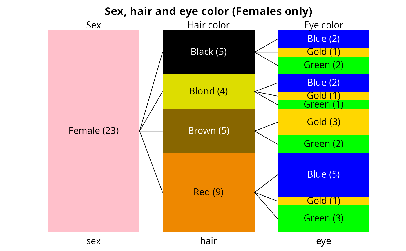 col=shecol,toplab=c("Sex","Hair color","Eye color"))