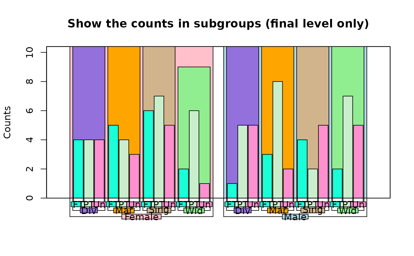 main="Show the counts in subgroups (final level only)",FUN="valid.n",