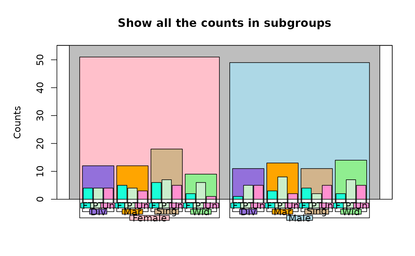 main="Show all the counts in subgroups",FUN="valid.n",mar=c(5,5,4,2),