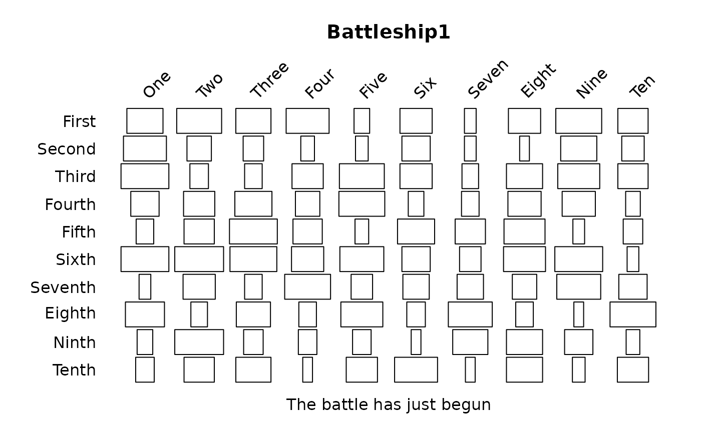 battleship.plot(x,xlab="The battle has just begun",main="Battleship1",