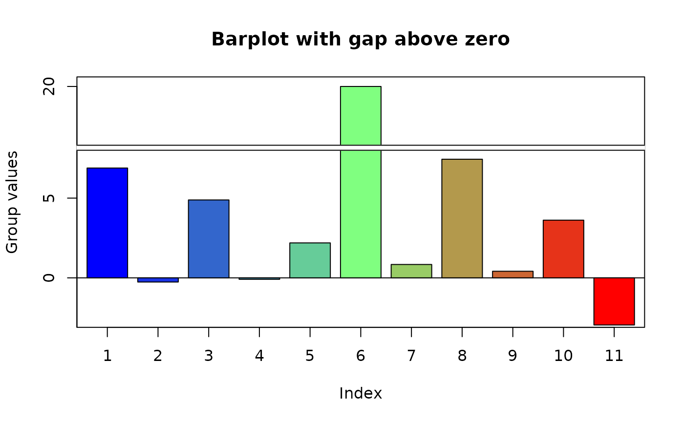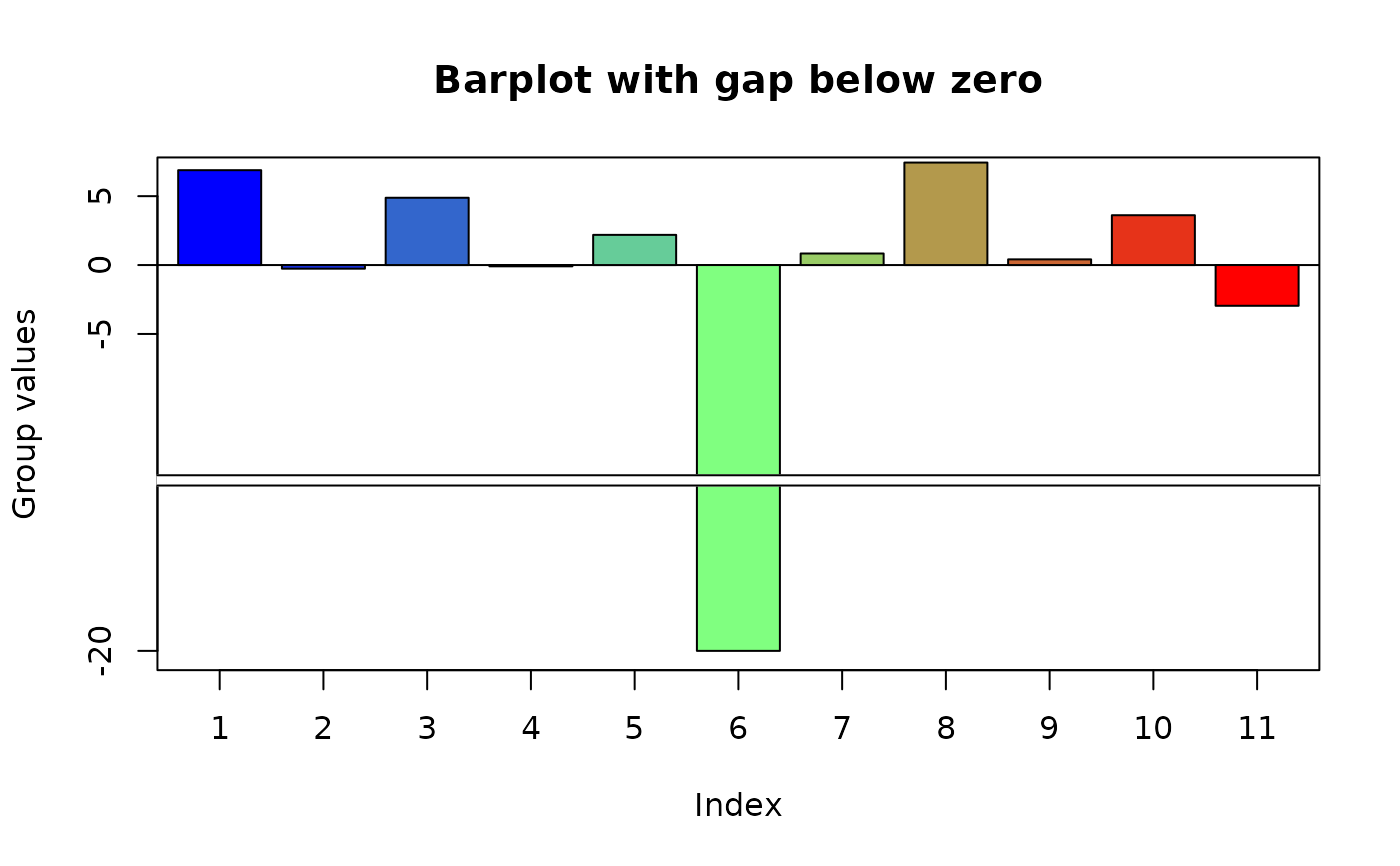 ylab="Group values",main="Barplot with gap below zero")
