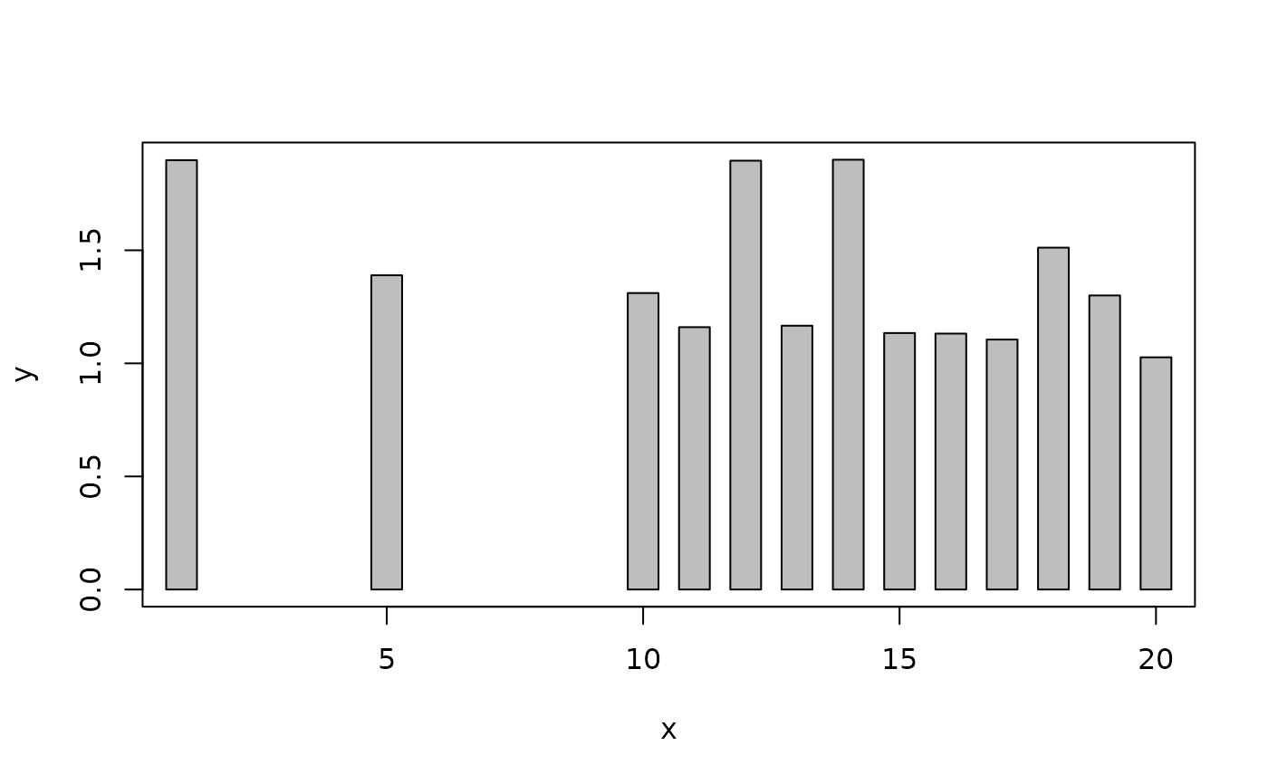 d<-data.frame(x=c(1,5,10:20),y=runif(13)+1,