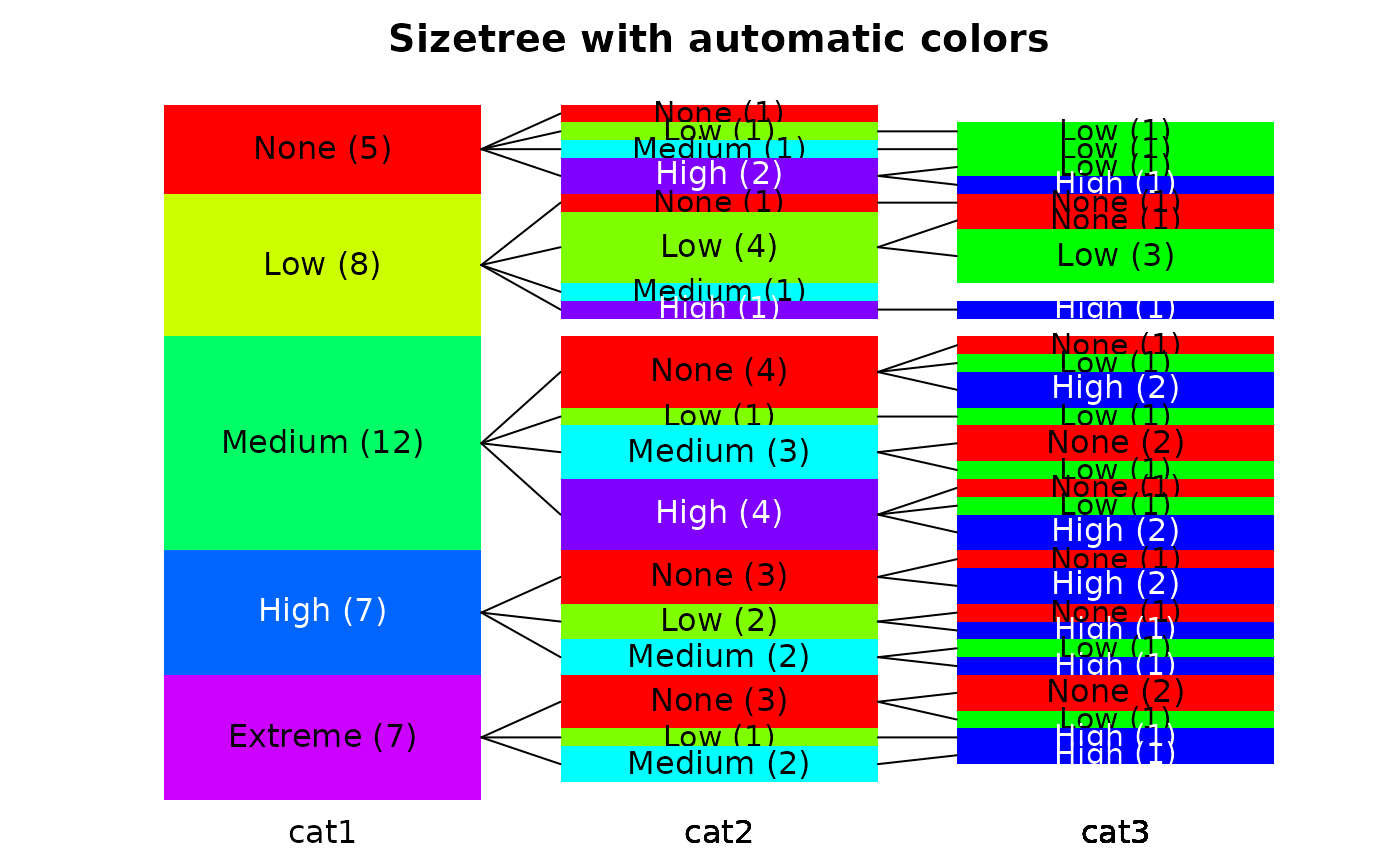 sizetree(hcats,main="Sizetree with automatic colors")