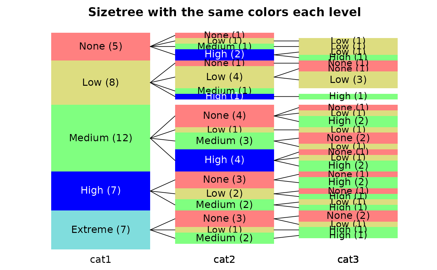 main="Sizetree with the same colors each level")