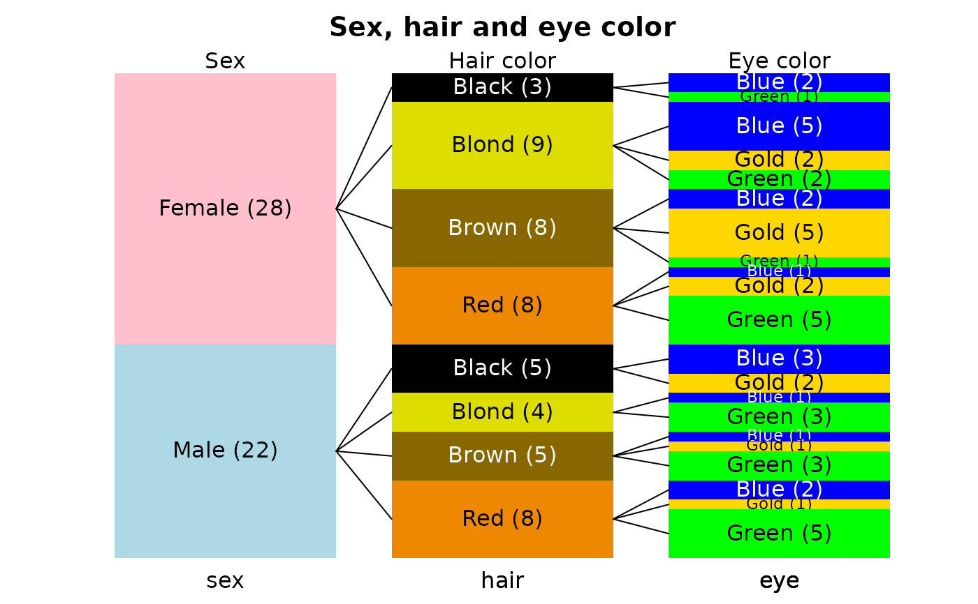col=shecol,toplab=c("Sex","Hair color","Eye color"))