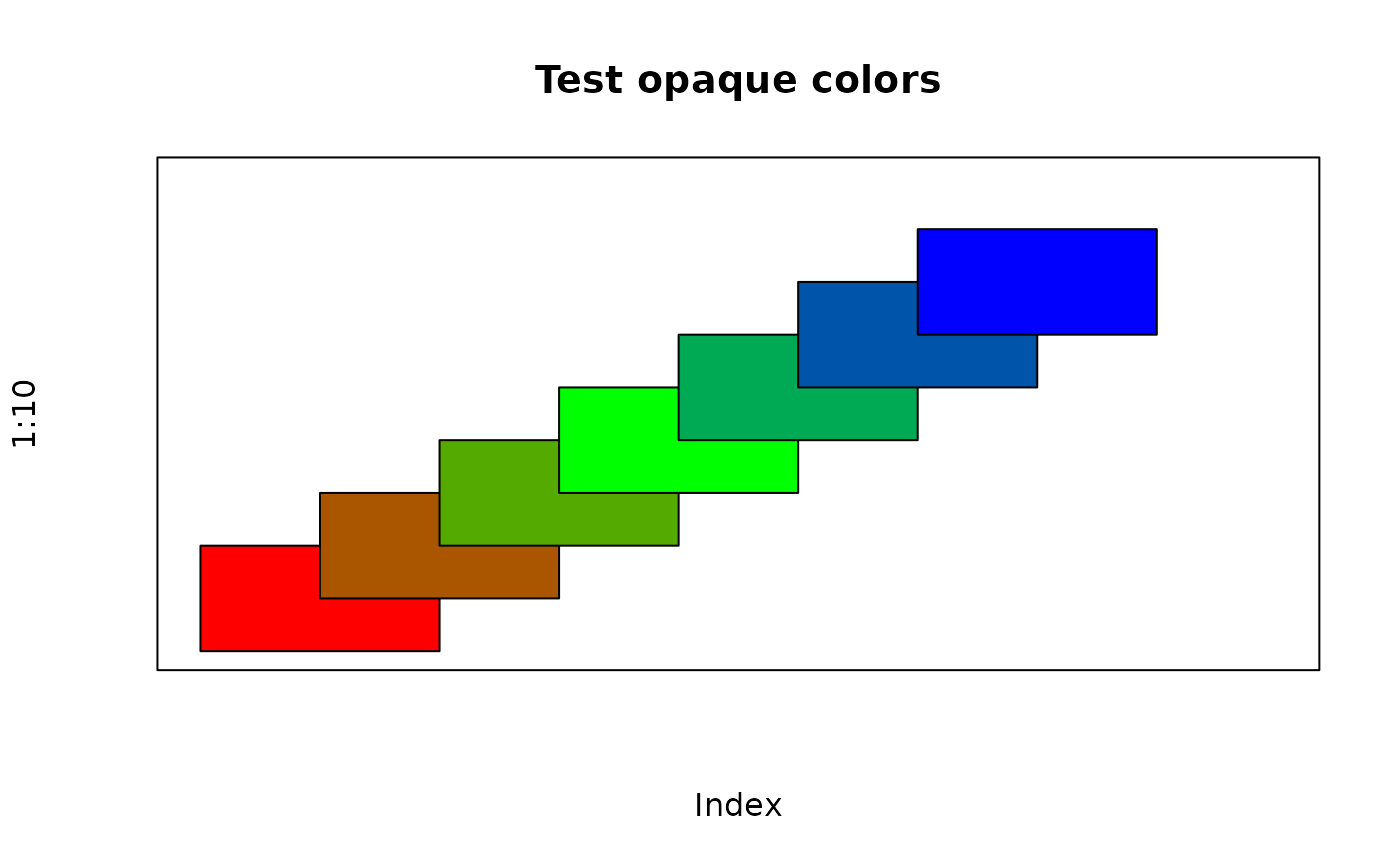 smoothColors(...,alpha=NA)A vector of hexadecimal color values as used by col.