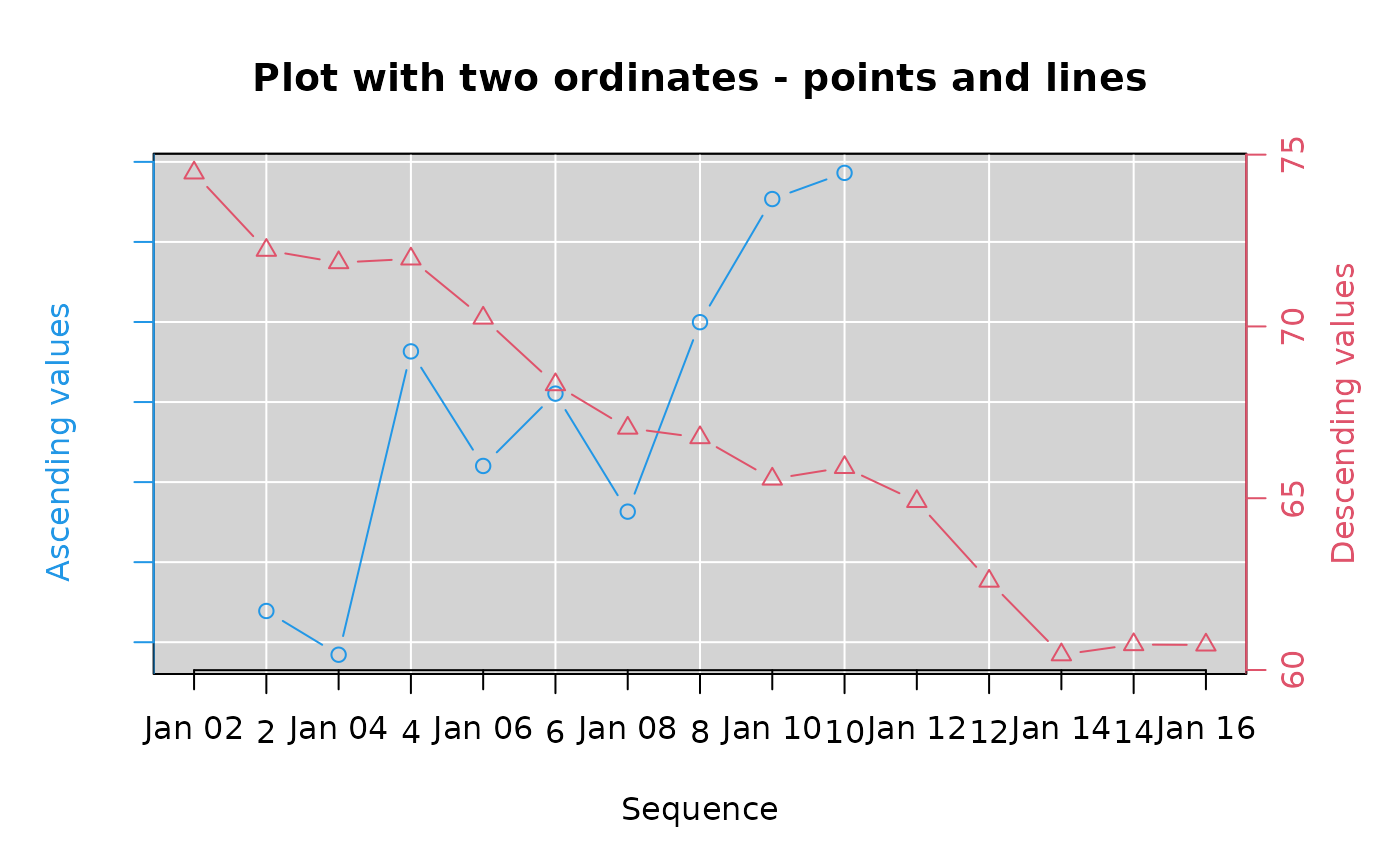 main="Plot with two ordinates - points and lines",