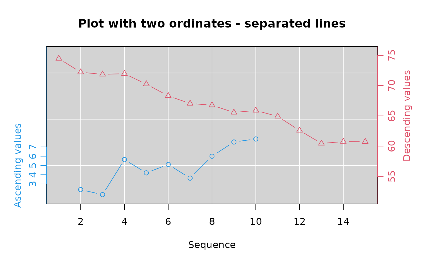 rylab.at=65,lcol=4,main="Plot with two ordinates - separated lines",