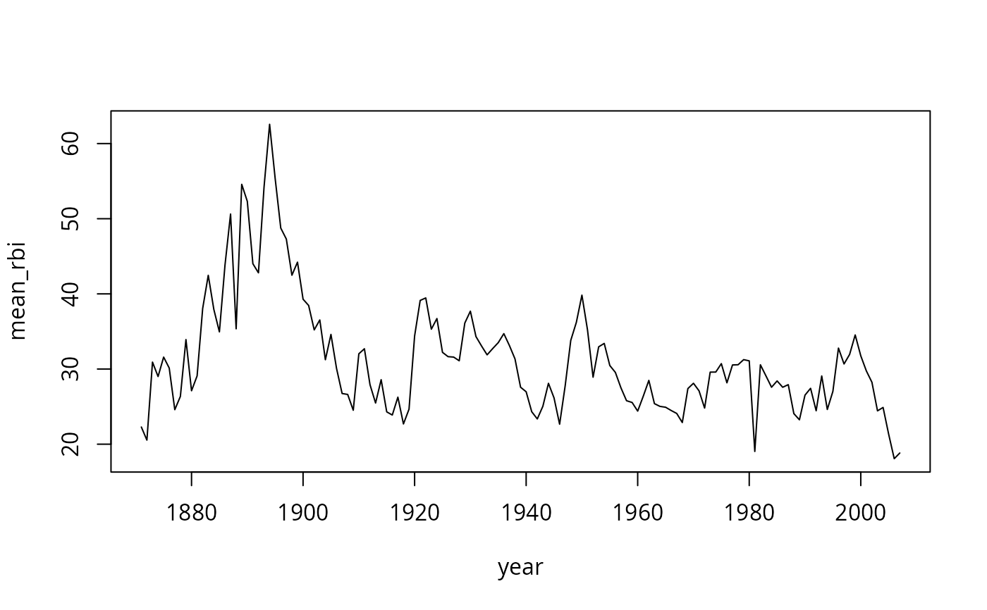 plot(mean_rbi ~ year, type = "l", data = rbi)
