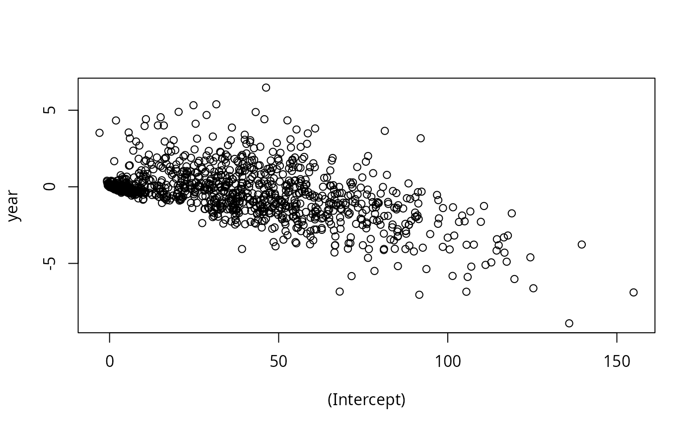 #> lm(formula = rbi ~ year, data = mutate(df, year = year - min(year)))