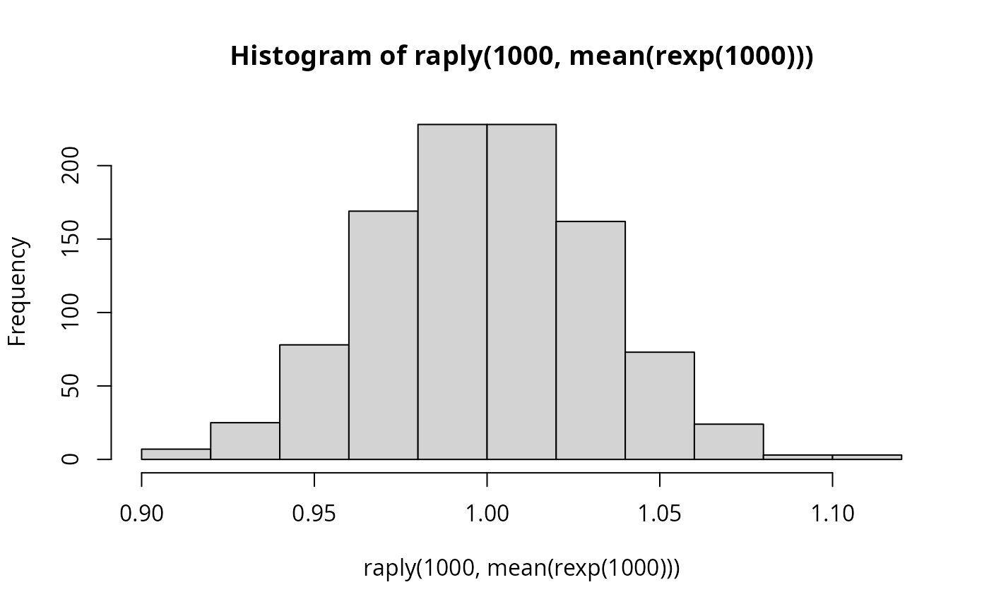 raply(.n, .expr, .progress = "none", .drop = TRUE)number of times to evaluate the expression