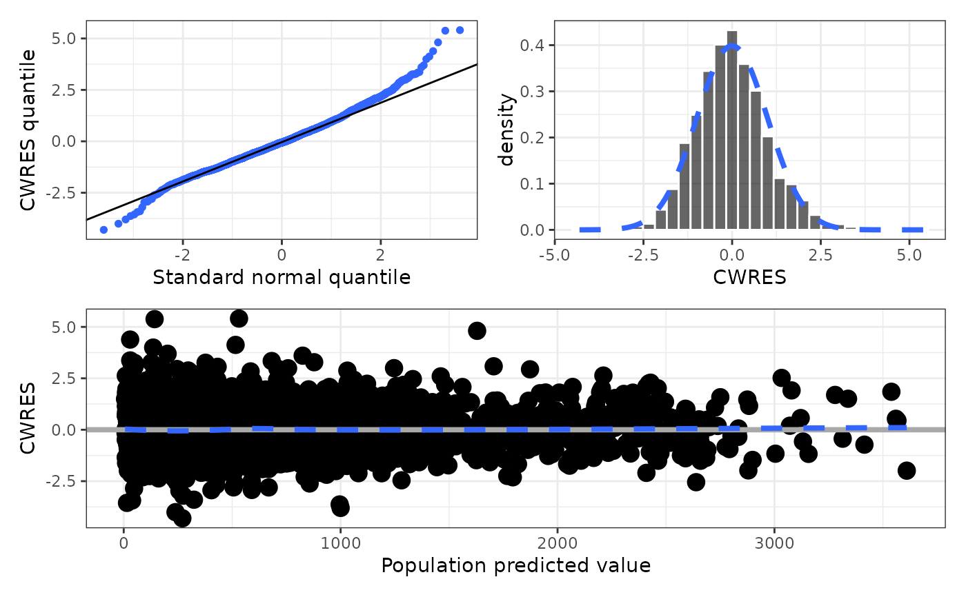 Get a single graphic of basic CWRES diagnostics (cwres_panel()) or get