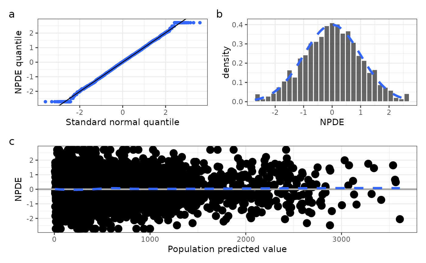 Get a single graphic of basic NPDE diagnostics (npde_panel()) or get the
