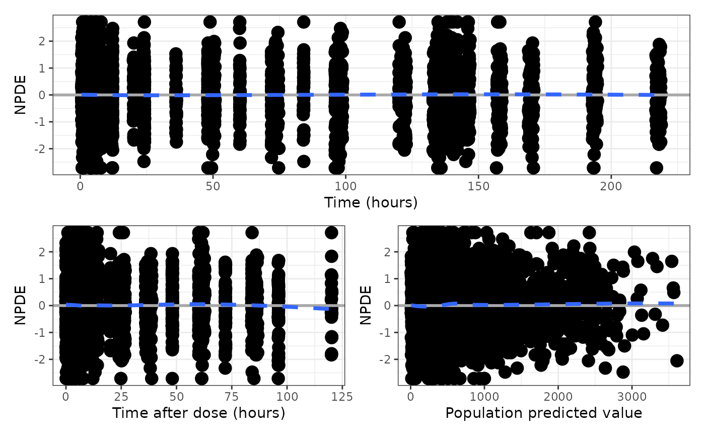 Get a single graphic of NPDE or CWRES diagnostics versus TIME,