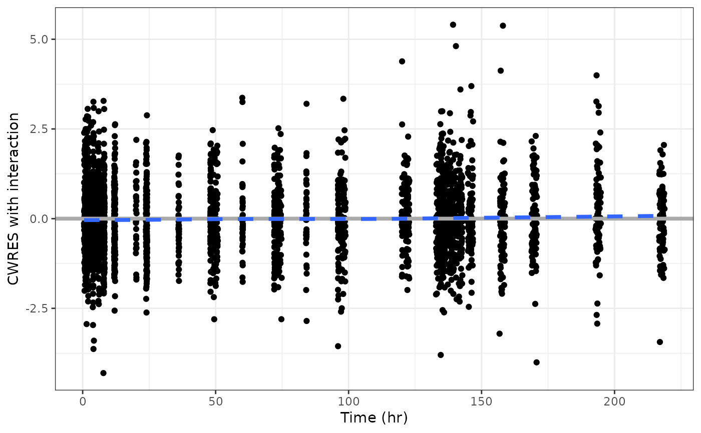 These plots have RES on the y axis and some time-related column on the x-axis, including TIME, TAD, or TAFD. Uses y_time to create the plots. Please see that help topic and details here for other arguments to customize the plot.