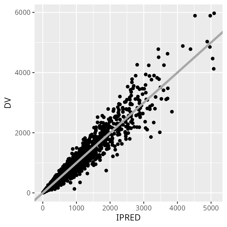 p <- ggplot(df, aes(IPRED,DV)) + geom_point()