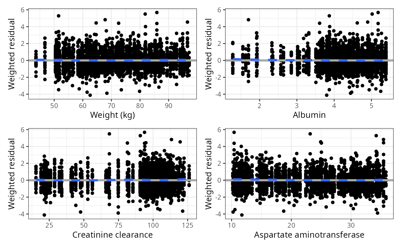 wres_cont(data, x = covs) %>% pm_grid()## `geom_smooth()` using formula = 'y ~ x'