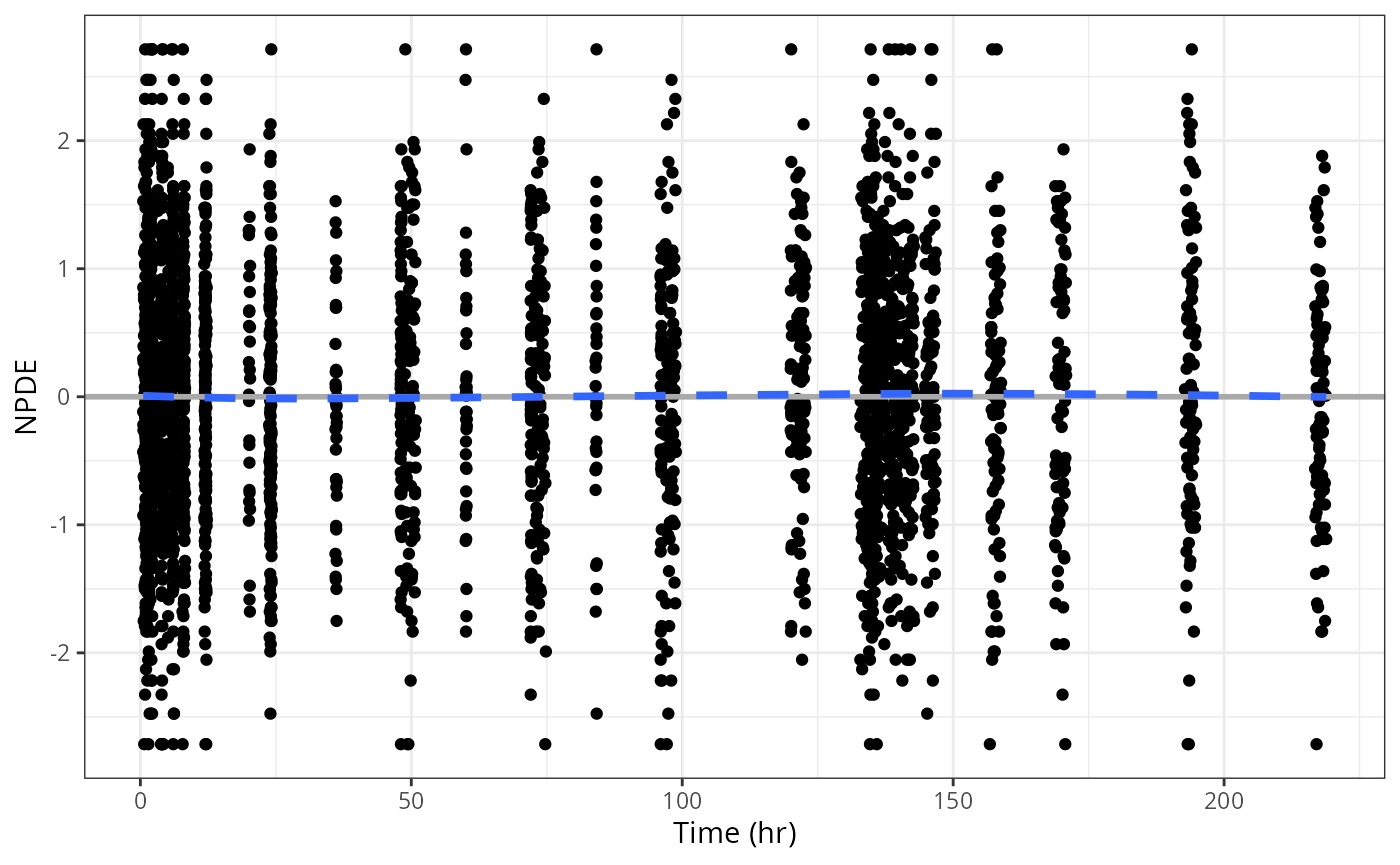 npde_time(data)## `geom_smooth()` using formula = 'y ~ x'