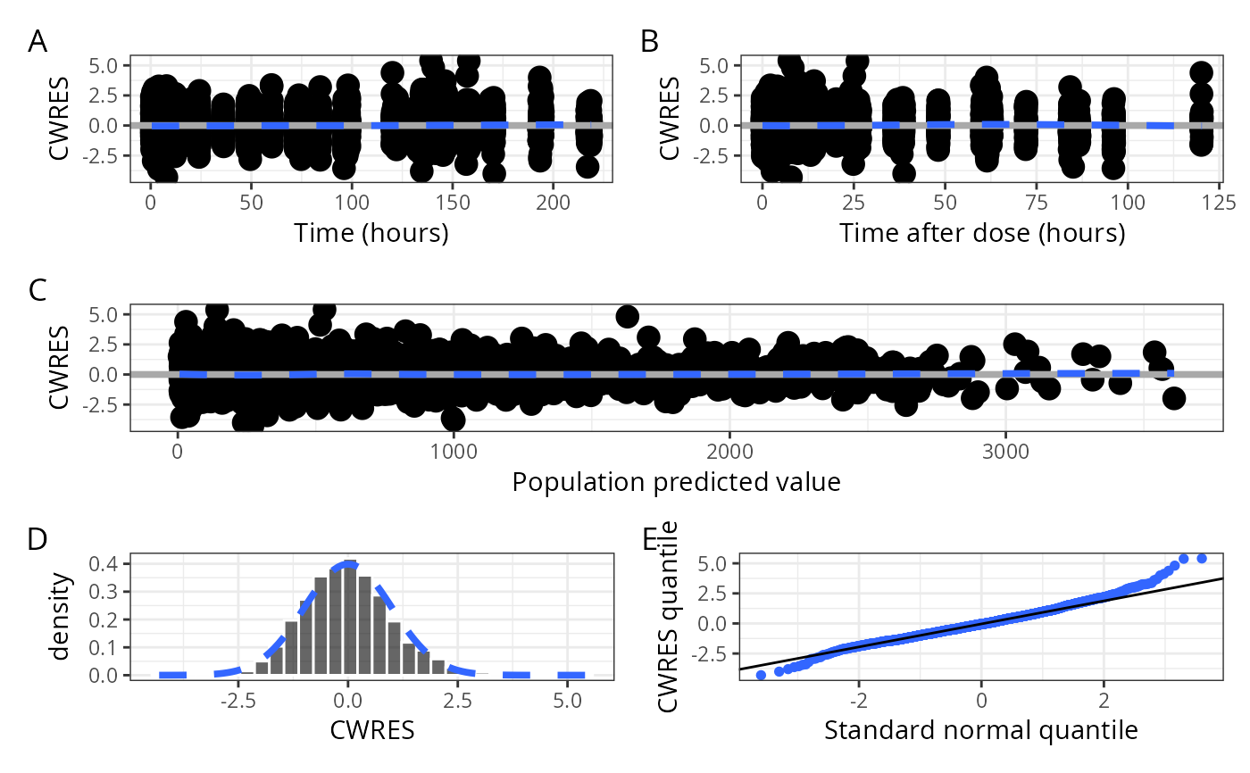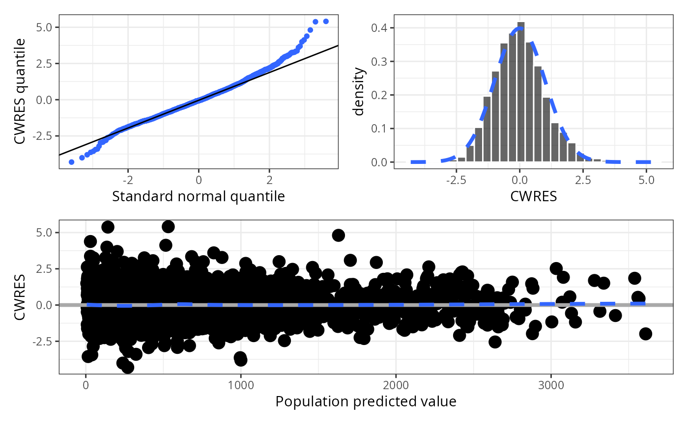 Get a single graphic of basic CWRES diagnostics (cwres_panel()) or get