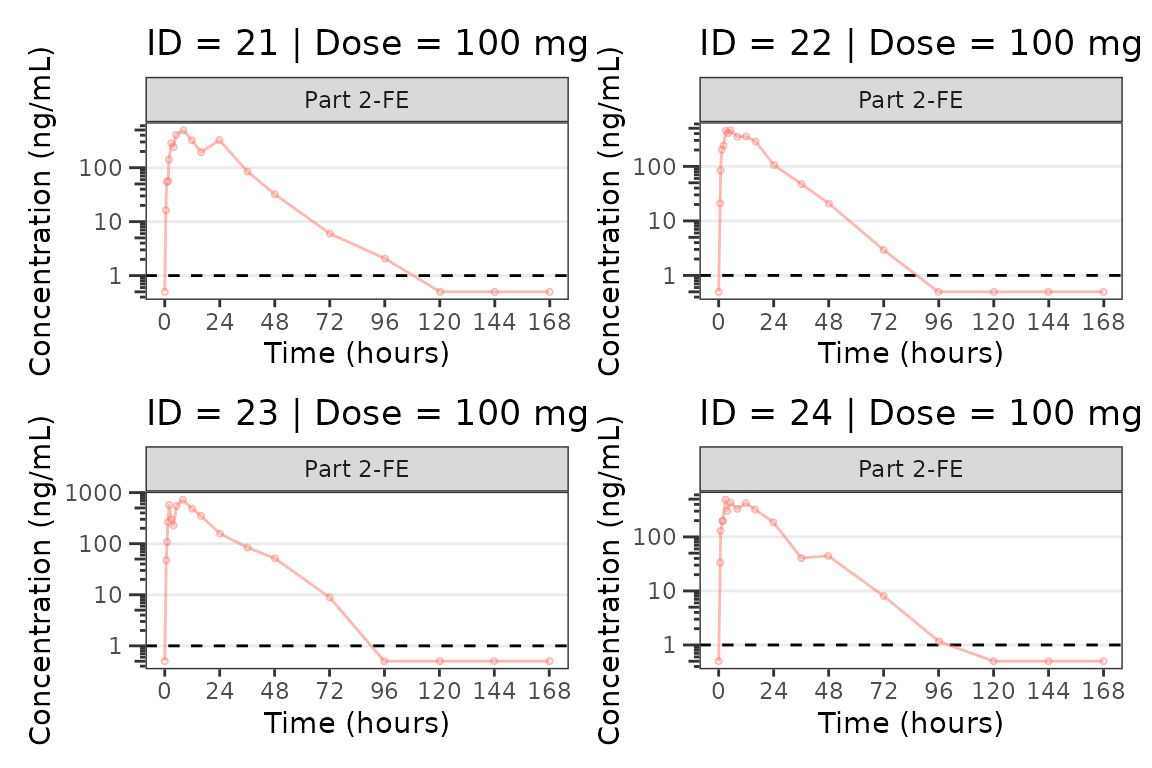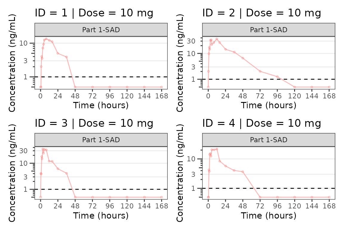conc_obj <- PKNCAconc(filter(data_sad_nca_input, EVID==0), CONC~TIME|ID+DOSE+PART)