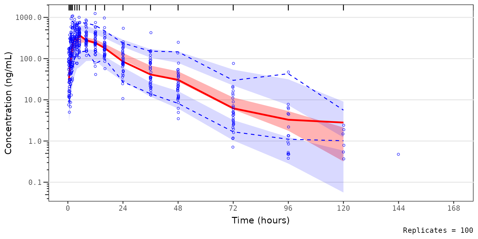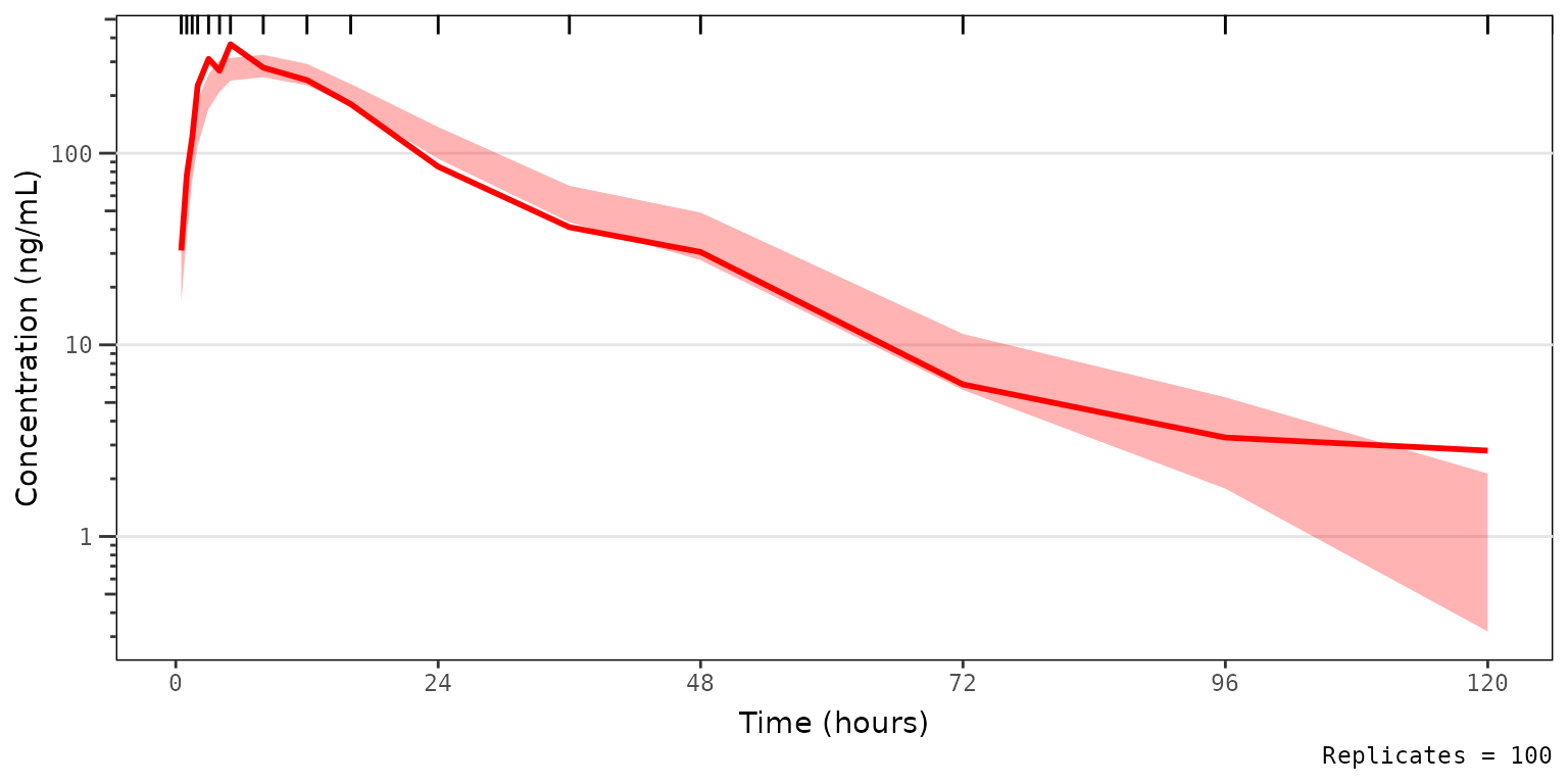 simout <- df_mrgsim_replicate(data = data, model = model,replicates = 100,