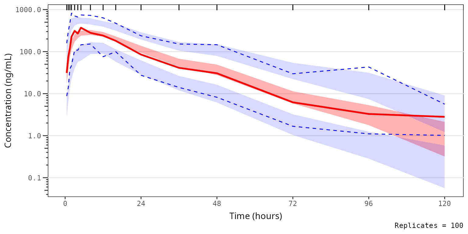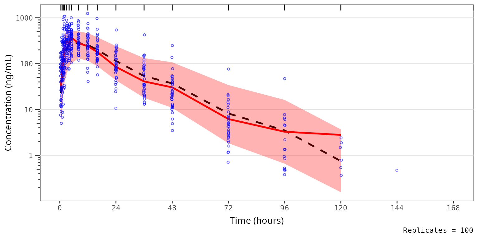simout <- df_mrgsim_replicate(data = data, model = model,replicates = 100,