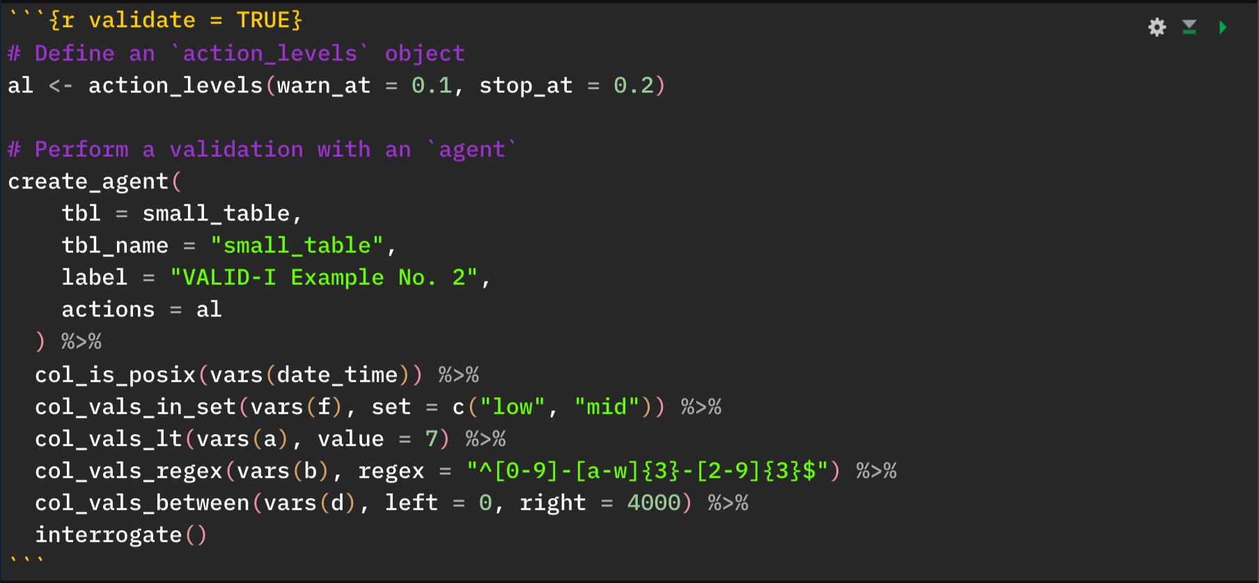 Here’s an example of a data quality validation workflow being executed in a single code chunk.