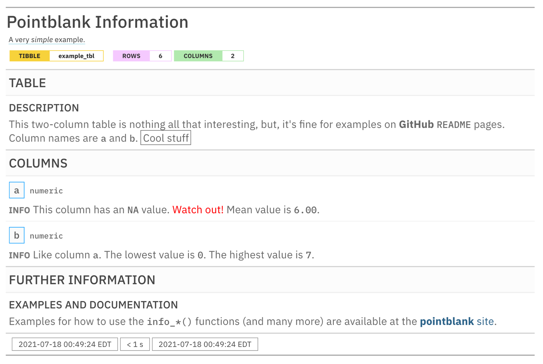`README` pages. Column names are `a` and `b`. ((Cool stuff))"