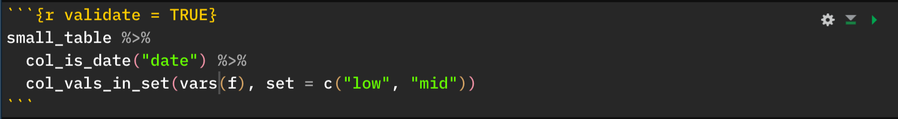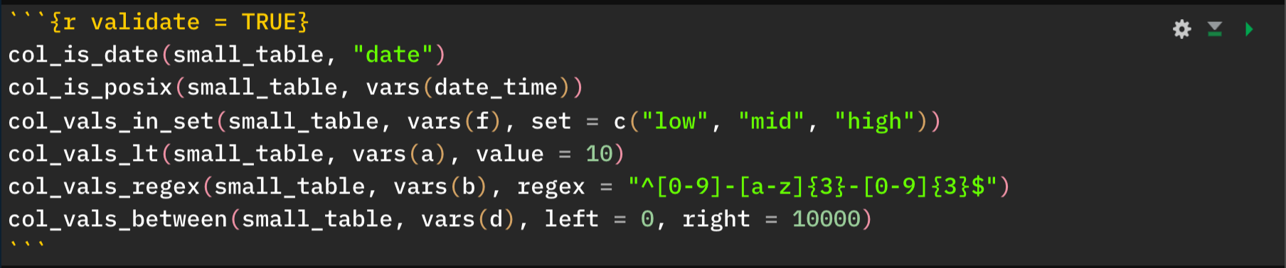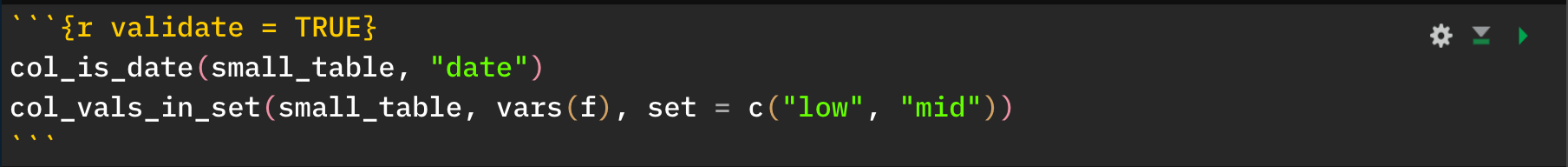 Here’s an example of a data quality validation workflow being executed in a single code chunk.