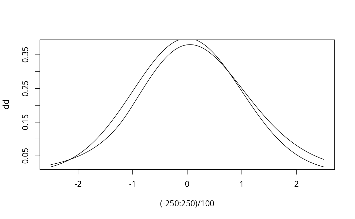 lines((-250:250)/100, dnorm((-250:250)/100)) # asses the fit of the density