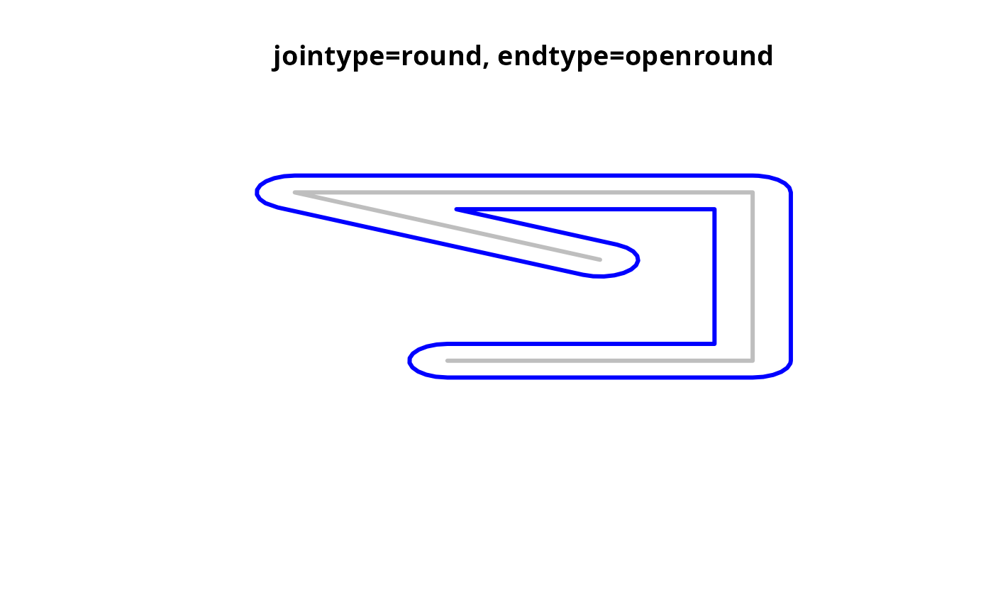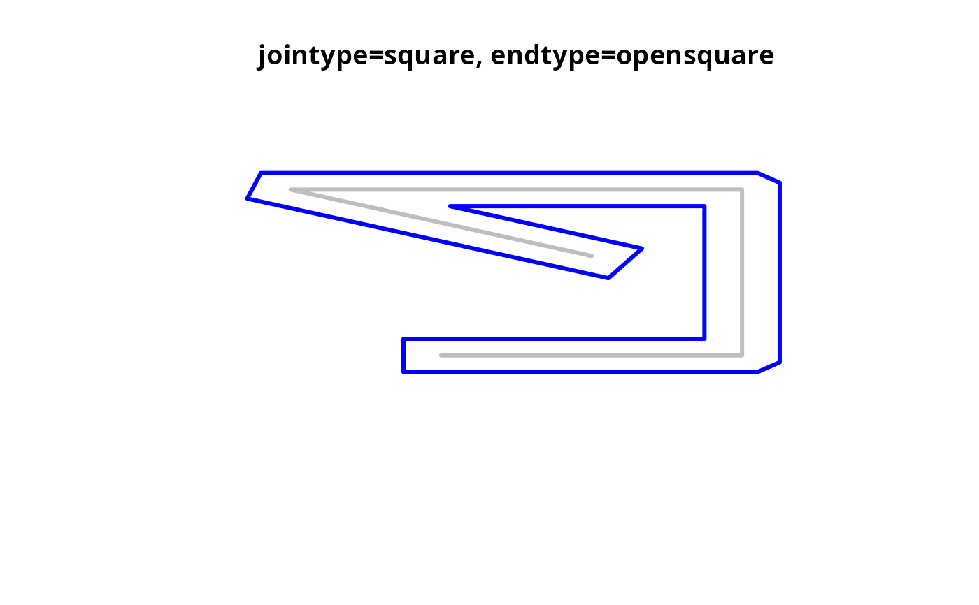 C <- polylineoffset(A, 0.5, jointype="square", endtype="opensquare")