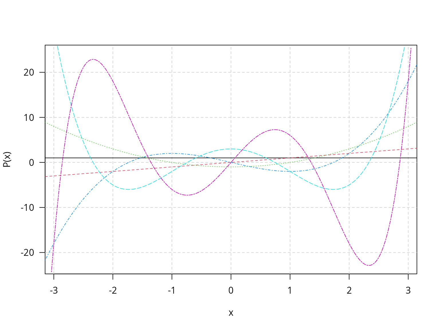 [4,] 0 0 0 1(p1 <- poly.calc(1:6))