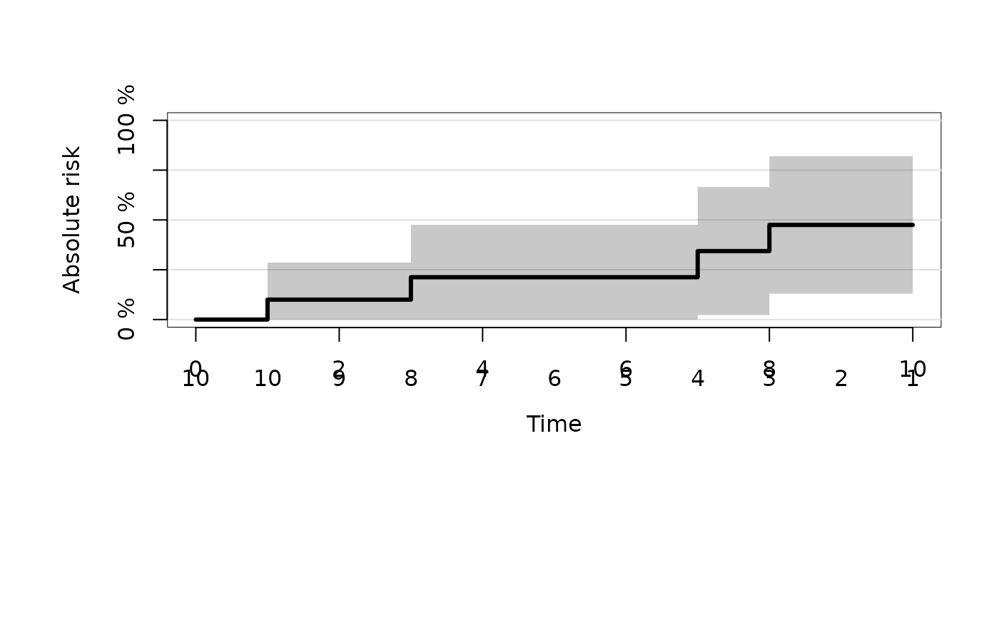 #> X time cause n.risk n.event n.lost cuminc se.cuminc lower upper