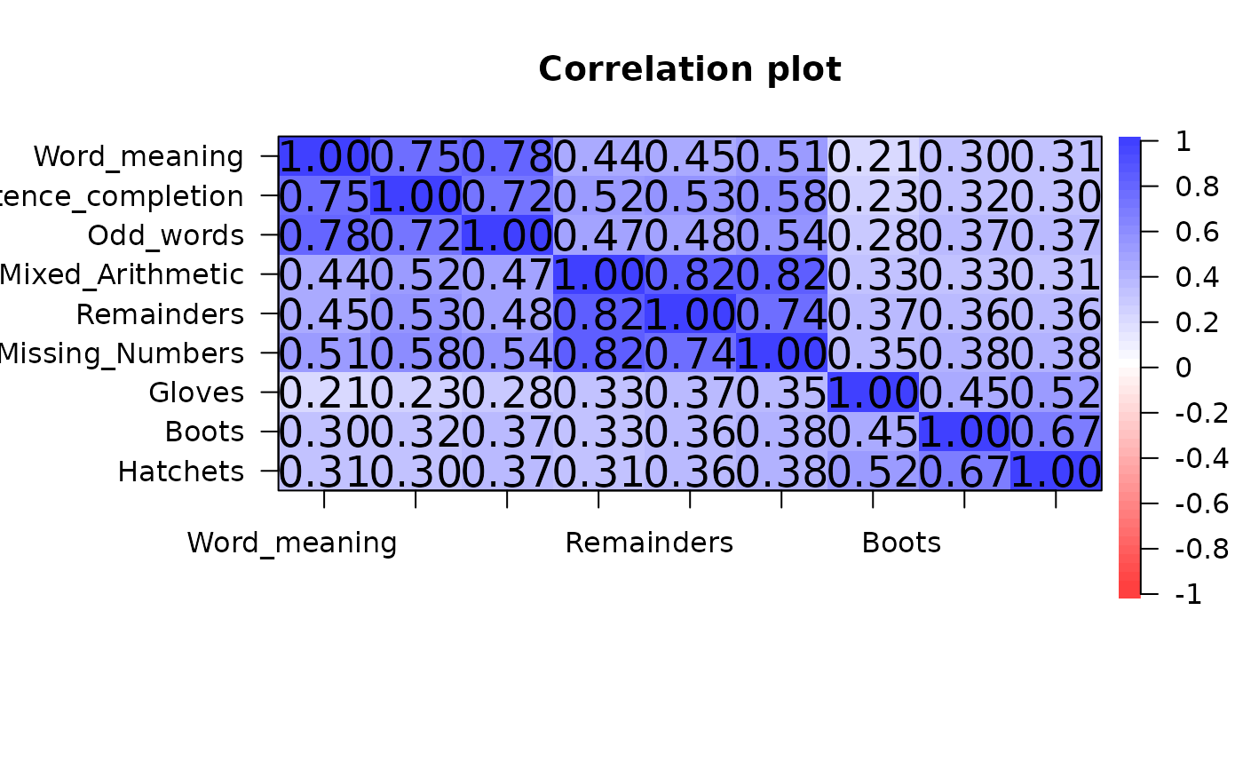 Harman.Holzinger: 9 x 9 correlation matrix of ability tests, N = 696.