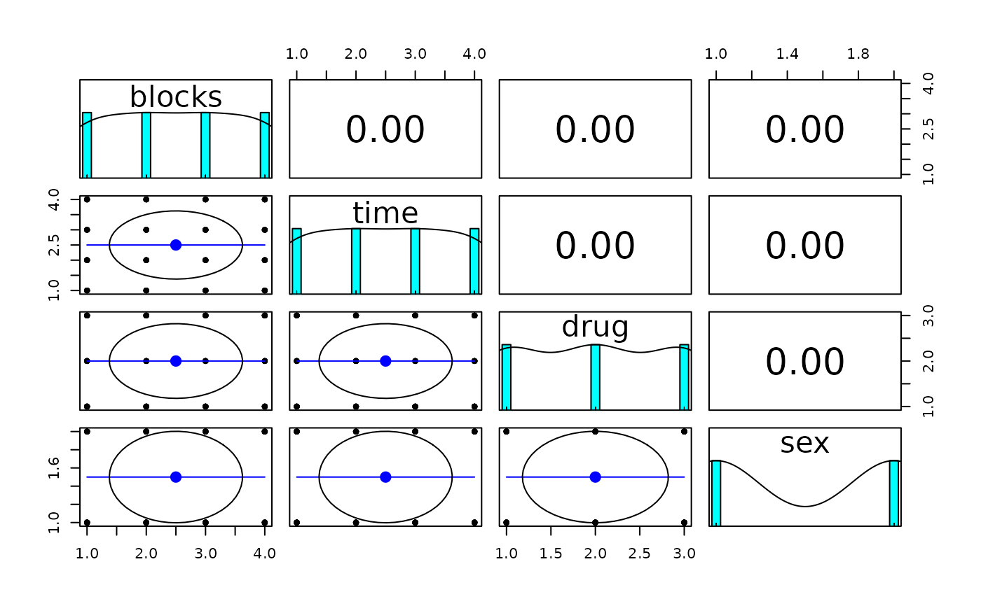 br <- block.random(96,c(time=4,drug=3,sex=2))