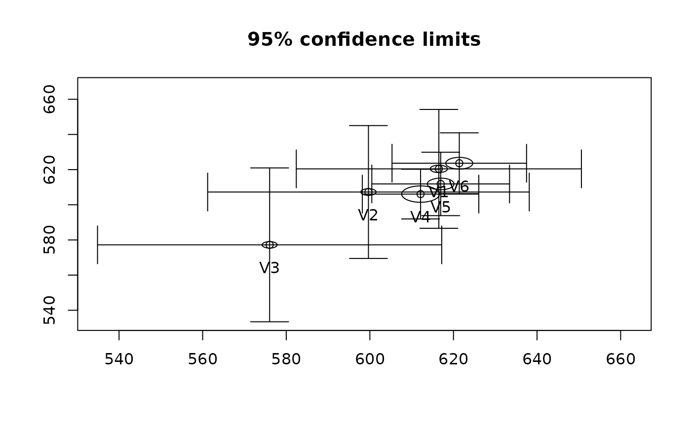 When visualizing the effect of an experimental manipulation or the relationship of multiple groups, it is convenient to plot their means as well as their confidence regions in a two dimensional space.
