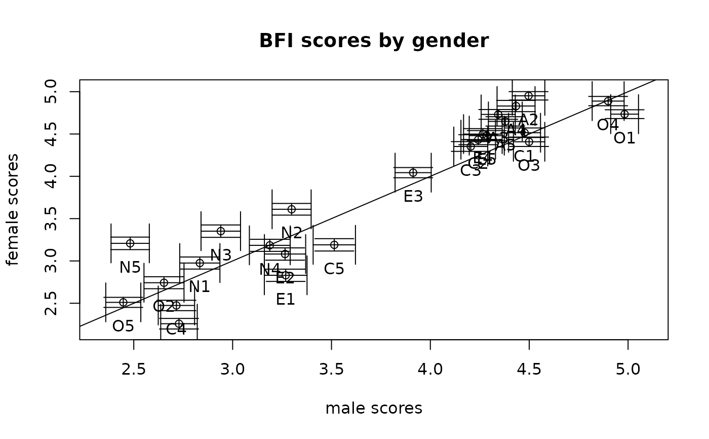 error.crosses(desc$'1',desc$'2',ylab="female scores",