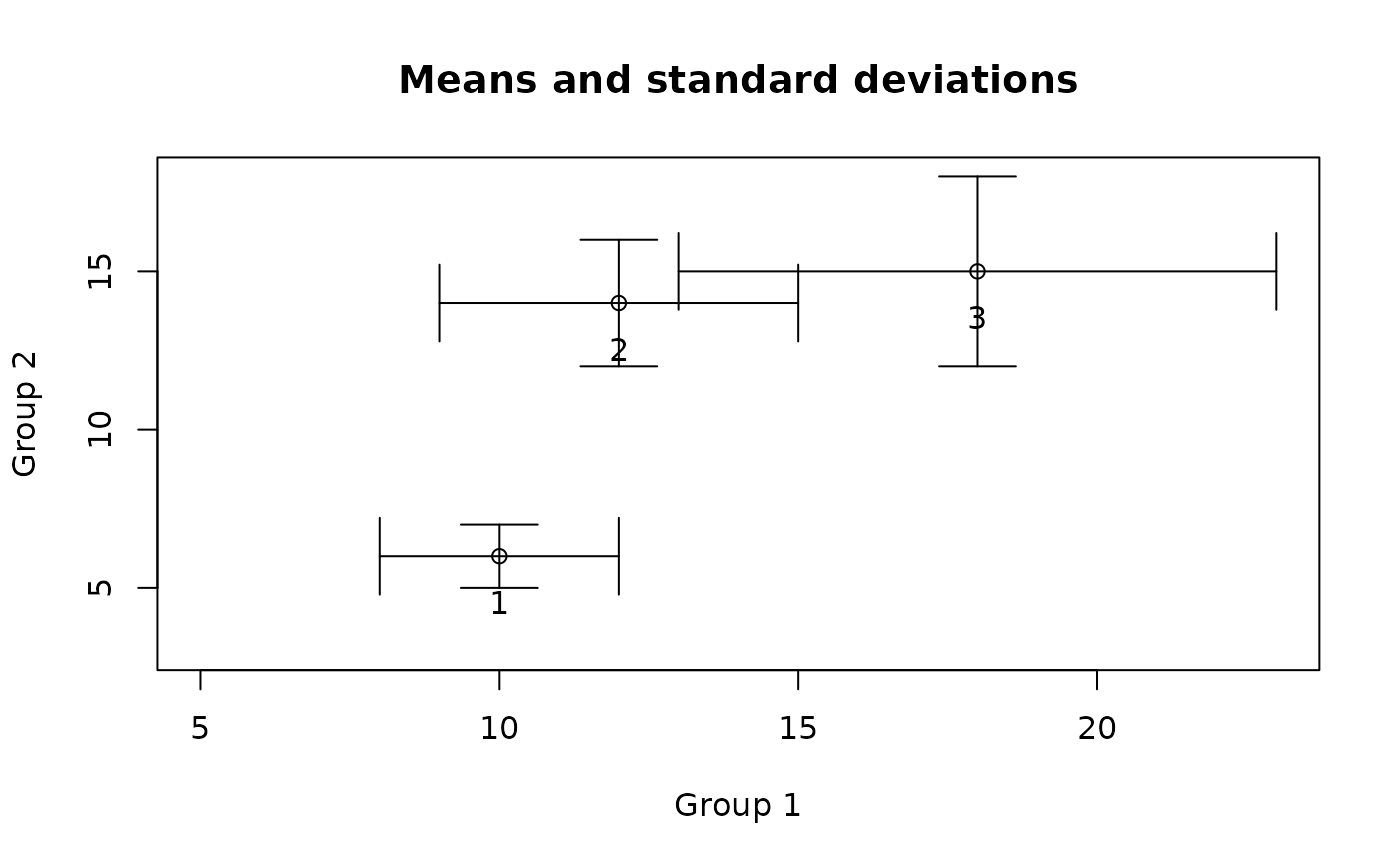 error.crosses(g1.stats,g2.stats,sd=TRUE)