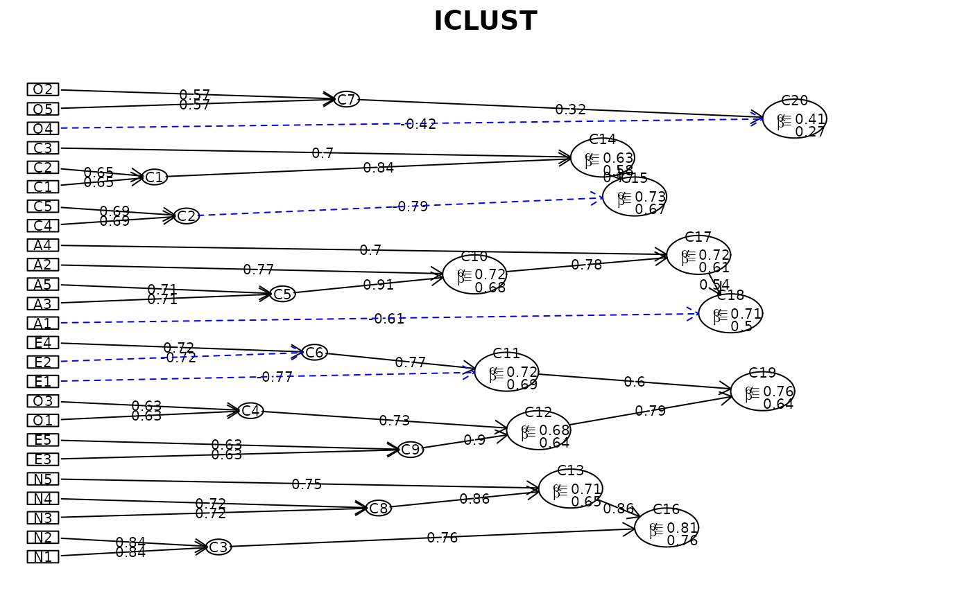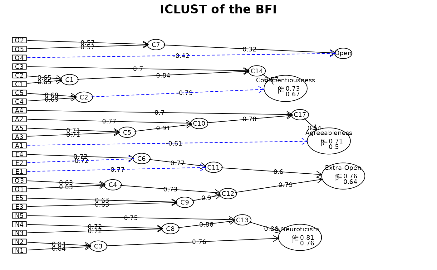 iclust.diagram(ic.bfi,cluster.names=cluster.names,min.size=4,e.size=1.75)
