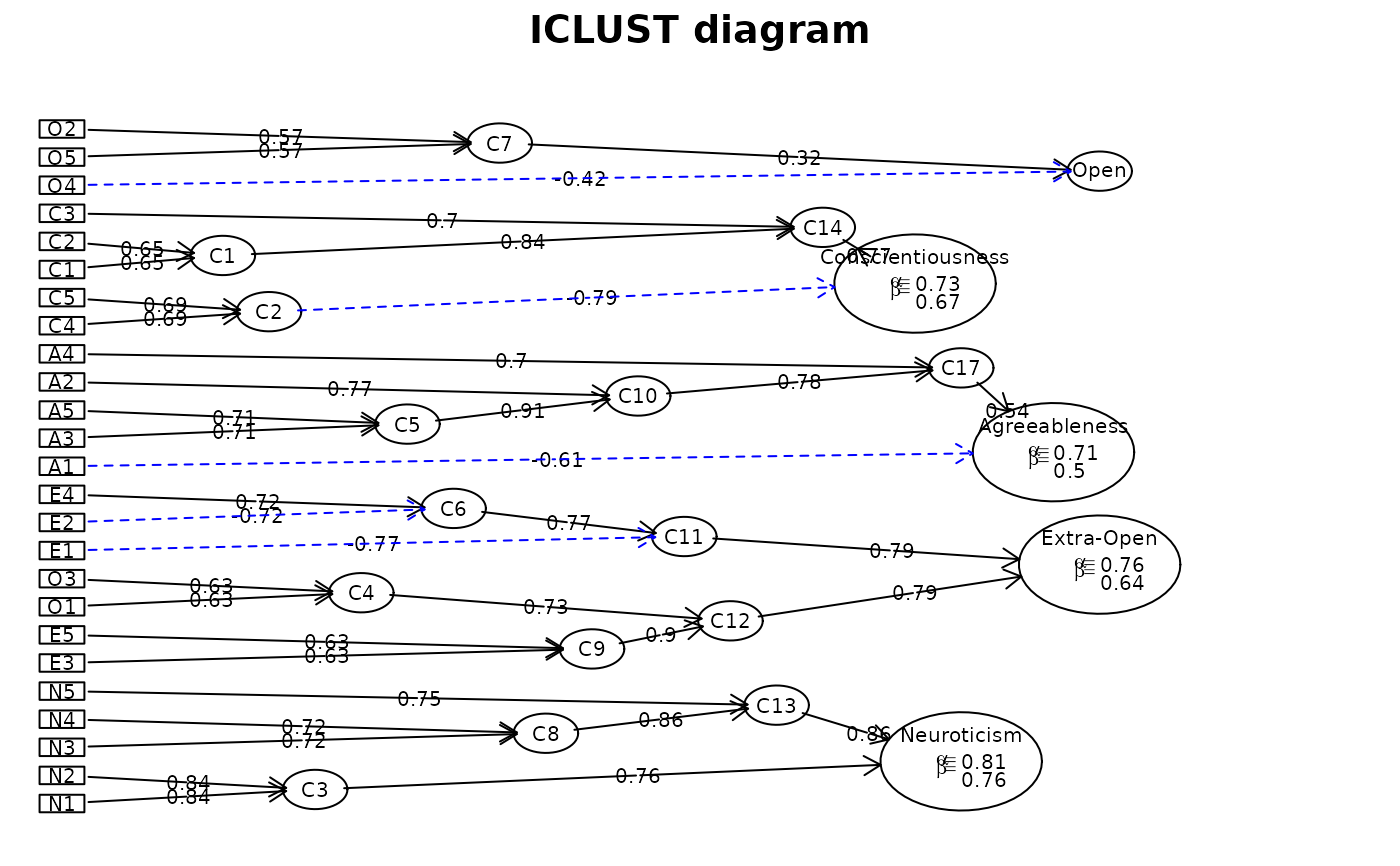 ic.bfi <- iclust(bfi[1:25],beta=3) #find the clusters