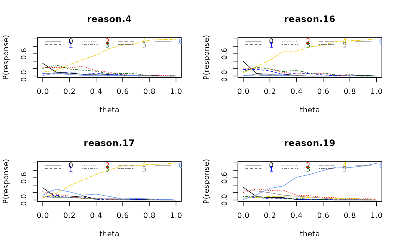 irt.responses(scores$scores,psychTools::iqitems[1:4],breaks=11)