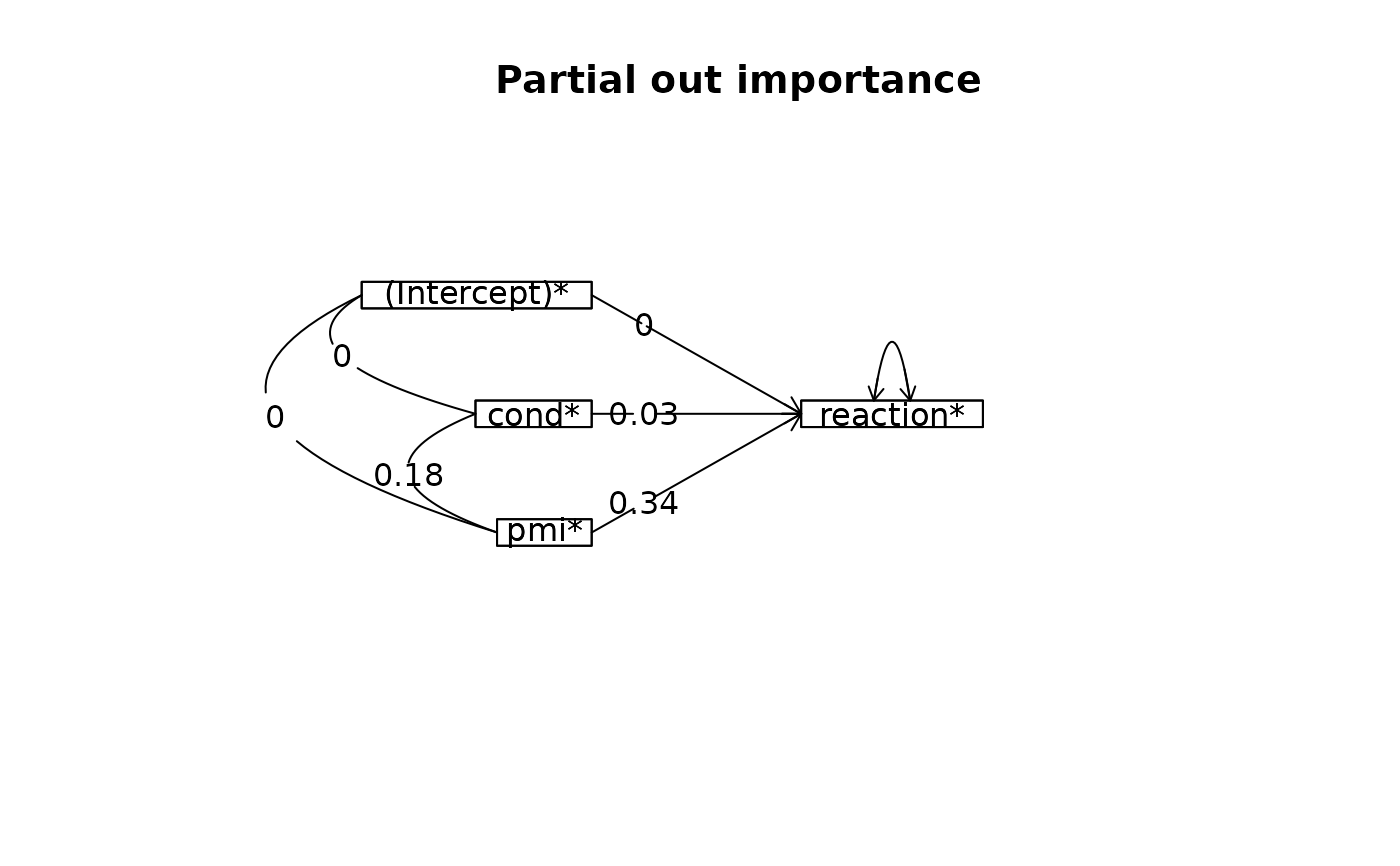 lmCor(reaction ~ cond + pmi - import, data = Tal.Or, main="Partial out importance")