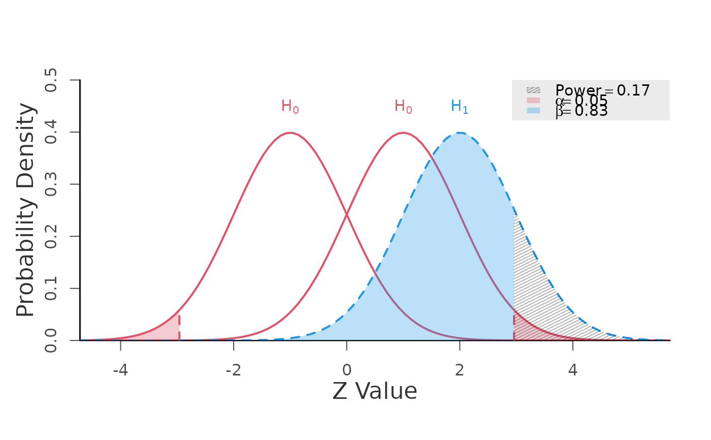 generic.z.test.RdCalculates power for the generic Z-Test with (optional) Type 1 and Type 2 error plots.