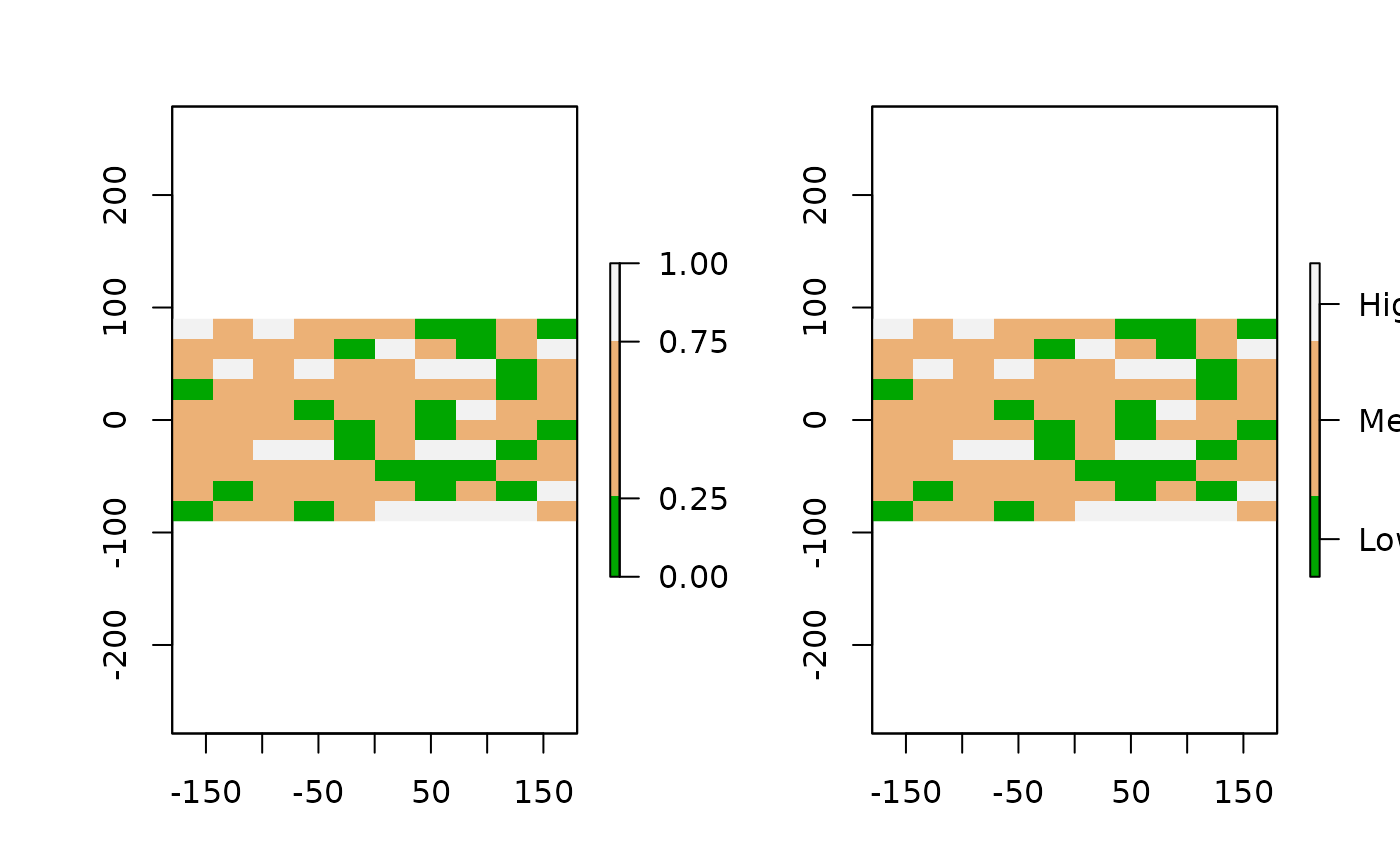 plot(x, col=terrain.colors(3), breaks=brk, axis.args=arg)