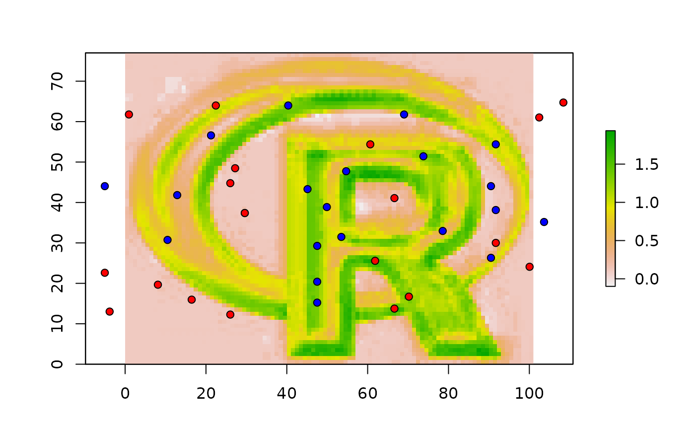 # A simple model to predict the location of the R in the R-logo using 20 presence points
