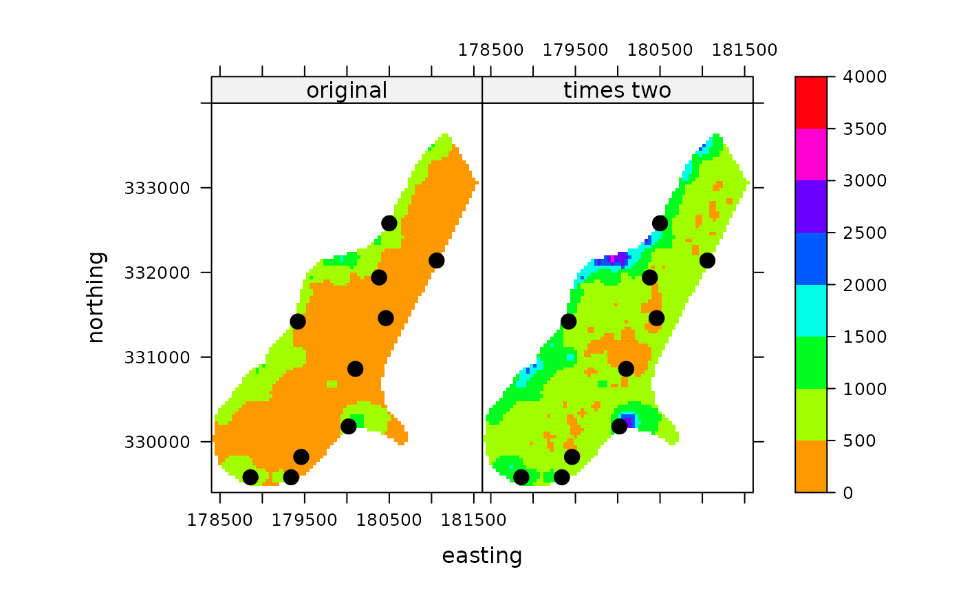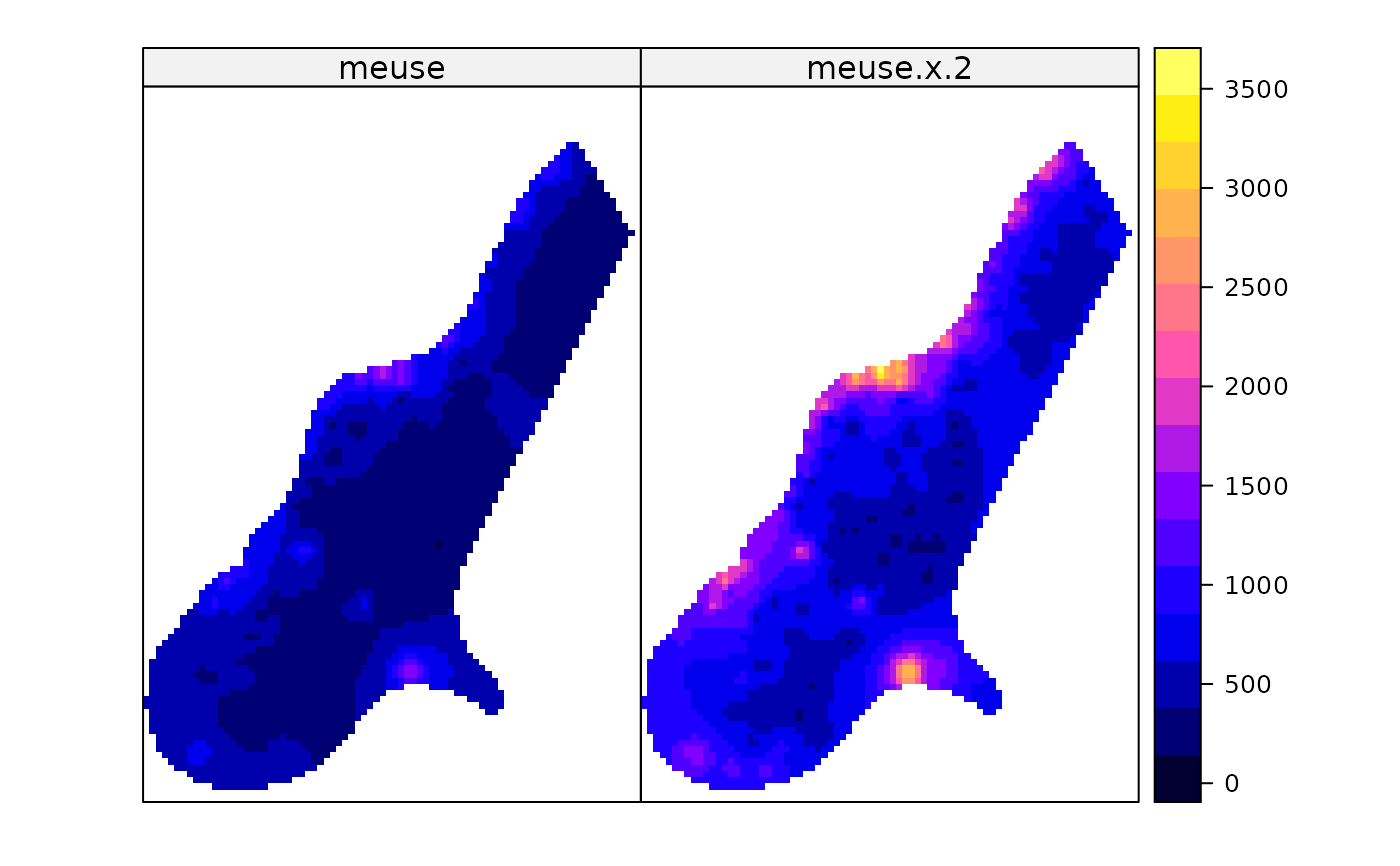 names(s) <- c('meuse', 'meuse x 2')