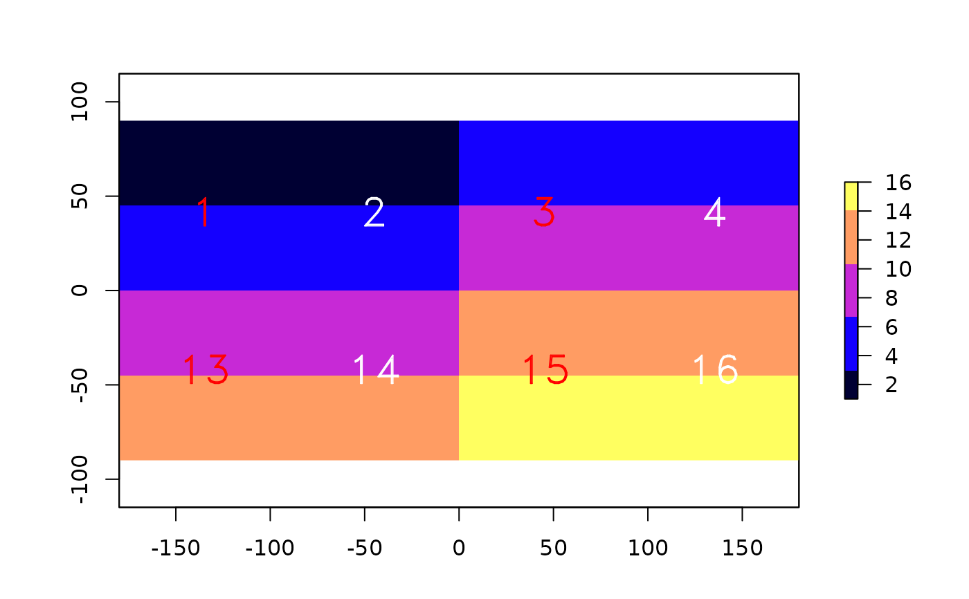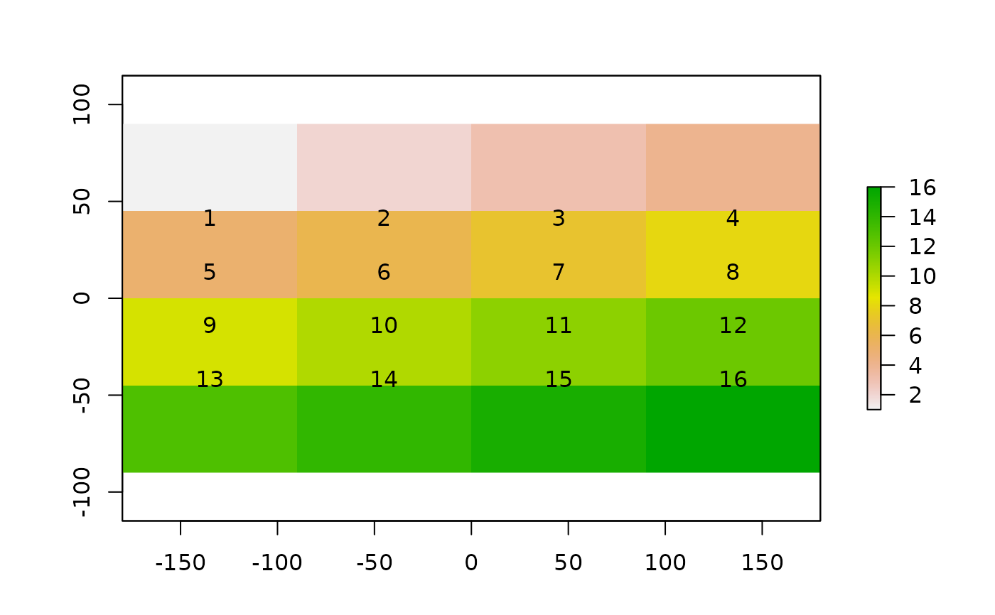 text(x, labels, halo=FALSE, ...)Raster*, SpatialPoints* or SpatialPolygons* object