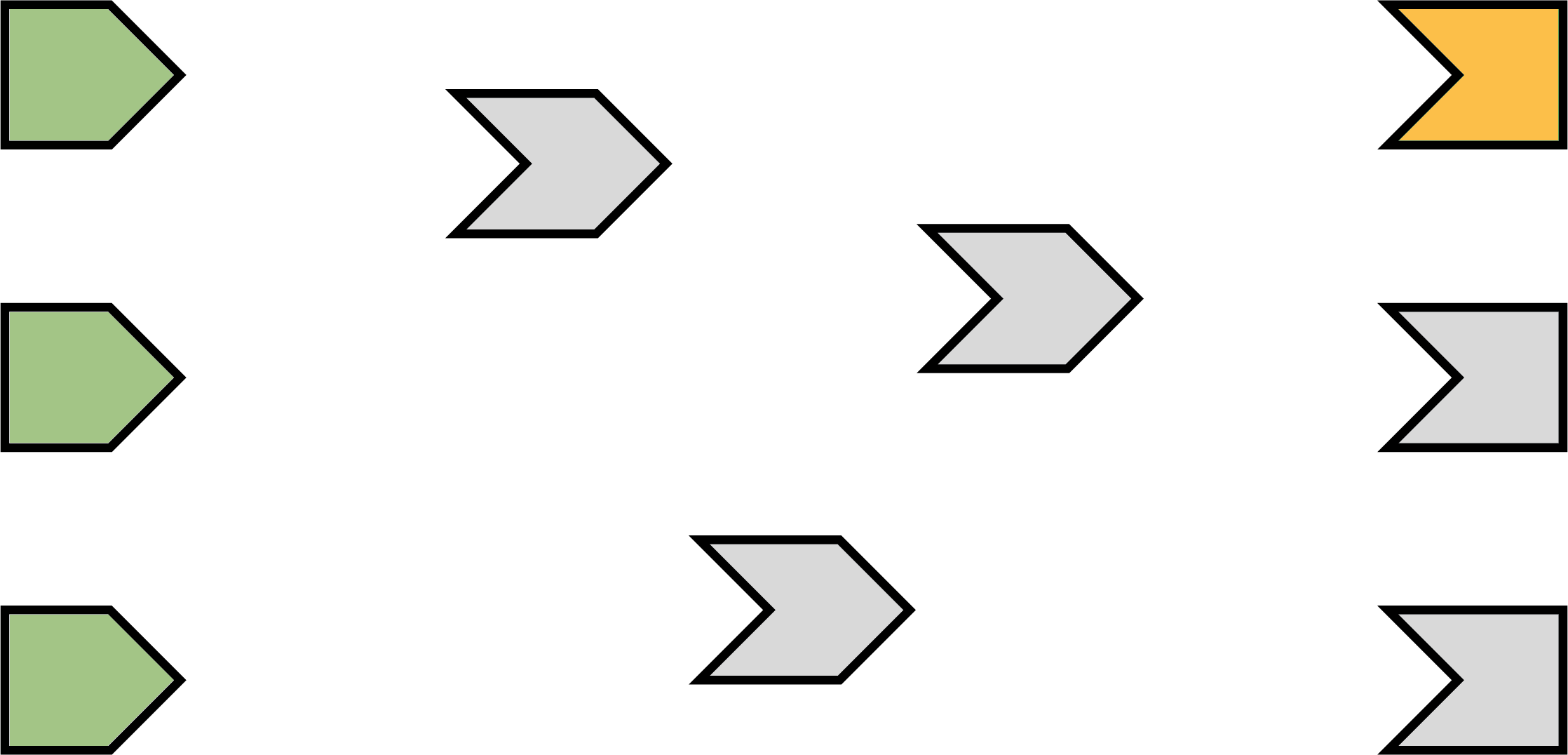 Below is a diagram of a reactive graph. The shapes on the left are reactive inputs (or values), the ones in the middle are reactive expressions, and on the right are observers (or outputs). The lines between the shapes are directional, with the arrows indicating the direction of their inter-dependencies. When a shiny app is loaded, this graph is discovered and formed. When a user interacts with the app and changes reactive input values, the graph is partially deconstructed and then reformed. The sub-sections that follow explain how this reactive life cycle works in detail. The reactlog visualization is designed to help you inspect each particular step in this reactive life cycle.