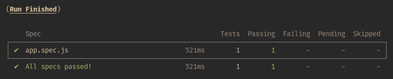 });Now, if you run tests, you will see the new ones. And they should pass.